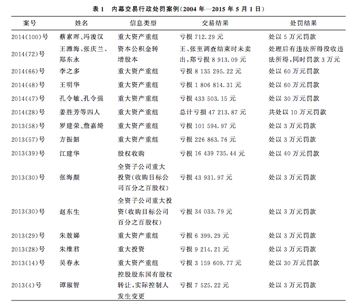 年 5 月 1 日为止的内 幕交易处罚案例中,大部分内幕交易人确实通过内幕交易获利或避损,但在少量案件中交易人却出现了亏损,具体案例如下表6: