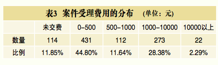 表3展示了962份判决中原告支付的案件受理费用的 分布情况。32约12%的投资者未交案件受理费。这些投 资者主要分为两类:一部分投资者未在法定期限内预交 案件受理费,被视为撤诉;另一部分投资者提起民事再 审,而最高人民法院驳回其再审申请。约42%的投资者