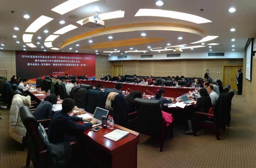 2018年12月20日,由中央财经大学法学院、京东数字科技研究院主办的2018年度国家社科基金重大项目《大数据法制立法方案研究》开题会、中央财经大学大数据法制研究中心成立大会暨中央财大—京东数科“数据治理与大数据法制沙龙”第1期在中央财经大学隆重举行。本次沙龙围绕大数据治理中存在的突出问题及国家社科基金重大项目《大数据法制立法方案研究》的初步框架展开,主题为“大数据法制立法方案”。大会聚集了来自全国人大法工委、司法部的专家领导,以及来自中国社会科学院、北京大学、清华大学、中国人民大学、中国政法大学、中央财经大学、北京师范大学、对外经济贸易大学、首都师范大学、上海对外经济贸易大学、上海交通大学、重庆大学、西北工业大学等高校和科研机构的专家学者,会同蚂蚁金服集团、腾讯研究院、腾讯金融研究中心、京东数字科技研究院、新浪互联网法律研究院、北京市蓝鹏律师事务所等企业科研机构的实务界人士共40余人出席了本次会议。与会专家围绕有关大数据时代背景下的“政府数据开放”、“个人信息保护”、“大数据确权与交易”、“数据资源安全与数据跨境传输”等问题与课题框架展开热烈探讨,取得了丰硕的成果。