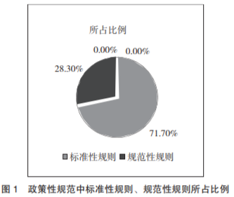 此外,如果从整体上分析(参见图1),4部法律文本中所有的政策性规范中的标准性条文所占比例为71.70%,接近3/4,可以说是占据了大部分的比例。以上数据表明,经济法中的政策性规范主要表现为标准性规则。