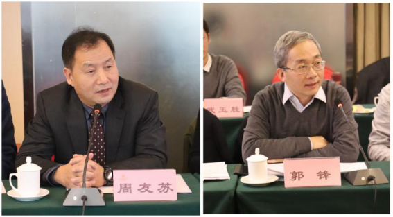 (主持人证券法学研究会副会长周友苏、致辞人证券法学研究会会长郭锋)