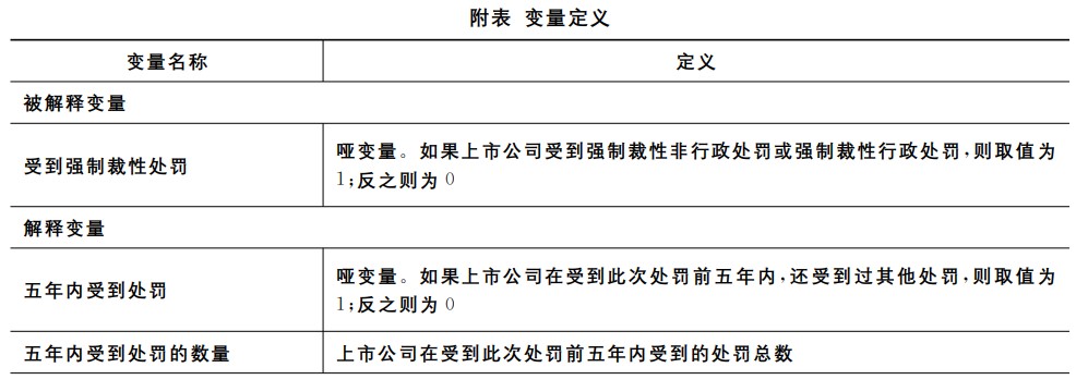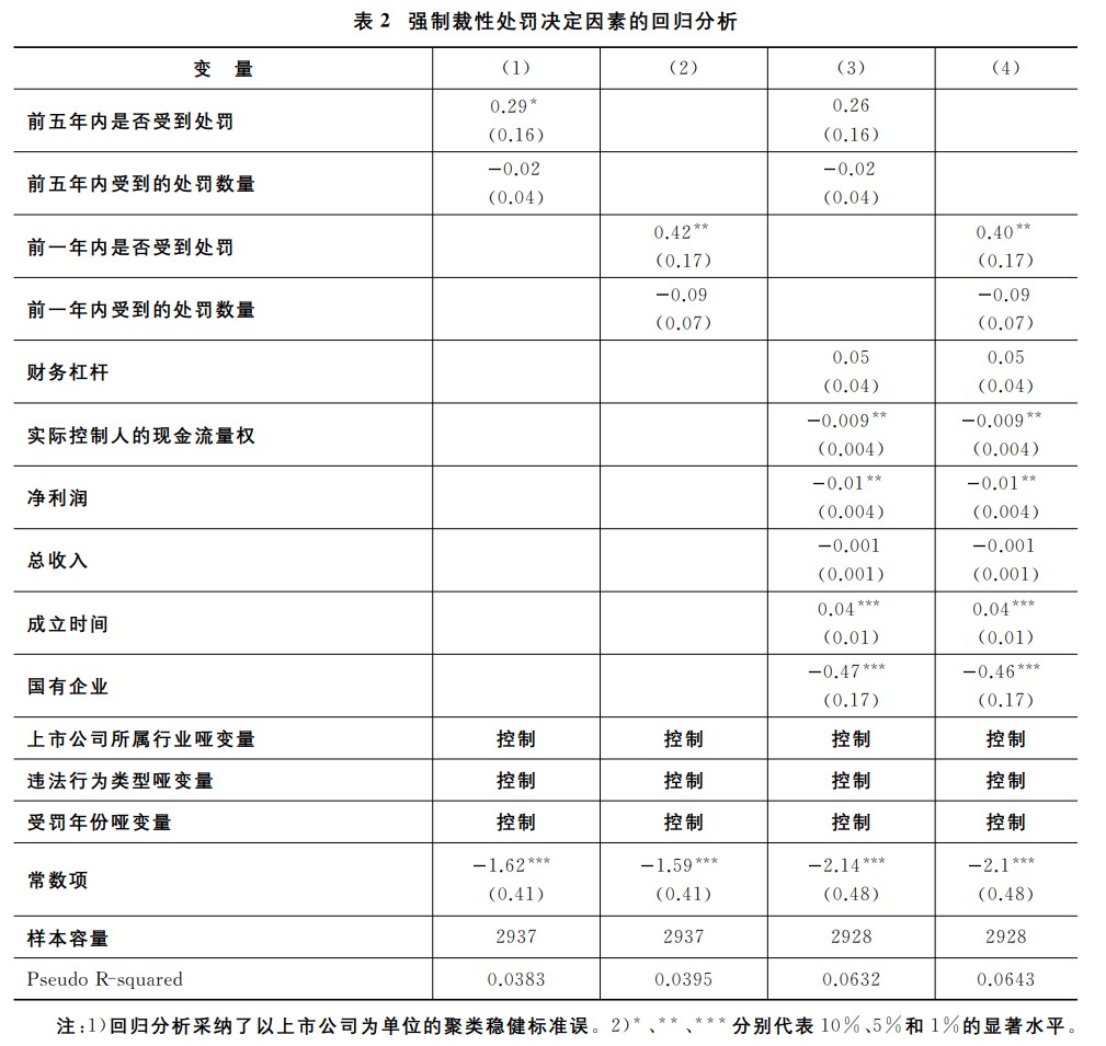 假设2:在一定时间范围内,行为人的违法频次越高,其受到强制裁性处罚措施的概率越大。