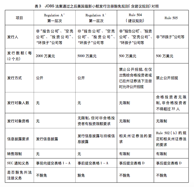 505 的监管强度及其在小额发行注册豁免制度中的地位还需要进一步合理确定。