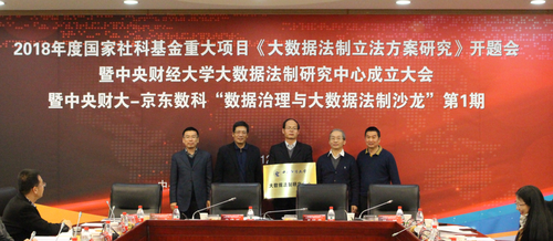 2018年12月20日,由中央财经大学法学院、京东数字科技研究院主办的2018年度国家社科基金重大项目《大数据法制立法方案研究》开题会、中央财经大学大数据法制研究中心成立大会暨中央财大—京东数科“数据治理与大数据法制沙龙”第1期在中央财经大学隆重举行。本次沙龙围绕大数据治理中存在的突出问题及国家社科基金重大项目《大数据法制立法方案研究》的初步框架展开,主题为“大数据法制立法方案”。大会聚集了来自全国人大法工委、司法部的专家领导,以及来自中国社会科学院、北京大学、清华大学、中国人民大学、中国政法大学、中央财经大学、北京师范大学、对外经济贸易大学、首都师范大学、上海对外经济贸易大学、上海交通大学、重庆大学、西北工业大学等高校和科研机构的专家学者,会同蚂蚁金服集团、腾讯研究院、腾讯金融研究中心、京东数字科技研究院、新浪互联网法律研究院、北京市蓝鹏律师事务所等企业科研机构的实务界人士共40余人出席了本次会议。与会专家围绕有关大数据时代背景下的“政府数据开放”、“个人信息保护”、“大数据确权与交易”、“数据资源安全与数据跨境传输”等问题与课题框架展开热烈探讨,取得了丰硕的成果。