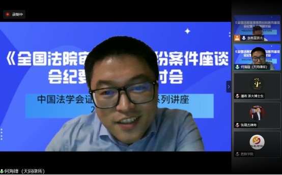 天同律师事务所顾问何海锋律师,在总结上述发言人建议的基础上,提出了对《纪要》中相关规定的困惑。