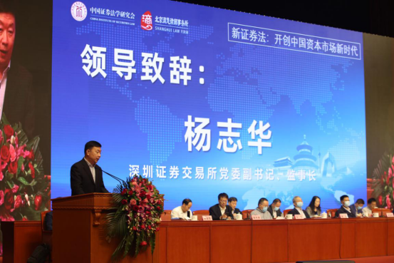 深圳证券交易所党委副书记、监事长杨志华对于新《证券法》为注册制改革奠定基础提出了三点看法。第一,新《证券法》为注册制改革奠定了制度基础,充分针对注册制的基本内涵,完善了信息披露、法律责任、投资者保护等一系列的基础性制度,构建了全方位、全链条的投资者保护新格局。第二,创业板改革与注册制平等推进,呈现出存量市场与增量市场同步改革、真正将选择权交给市场以及全方位提升市场获得感三个方面的特点。第三,《证券法》各项制度的全面落实需要进一步细化,首先面临着重点、难点问题,如代表人诉讼的推行完善,其次也面临着宏观性和全局性的问题,如法律责任的分配,最后也有前瞻性问题的探索与研究,如区块链、大数据等科技发展带来的新挑战。
