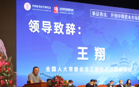 全国人大常委会法工委经济法室副主任王翔首先就《证券法》的顺利通过和实施对中国法学会证券法学研究会表达诚挚感谢。他指出,第一,《证券法》实际上修改的频率较高,修改的深度较大,修改过程中存在曲折,但2019年《证券法》顺利通过,说明经过多年实践,大家对证券资本市场的重大改革已经形成了高度统一的认识。第二,《证券法》此次修订有两点值得关注,一是金融资本市场改革要坚持市场化、法治化的改革方向,二是突出强调对投资者的保护。第三,《证券法》的每次修改都是阶段性的修改,新制度需要经过实践的检验,如域外适用制度、代表人诉讼制度等。